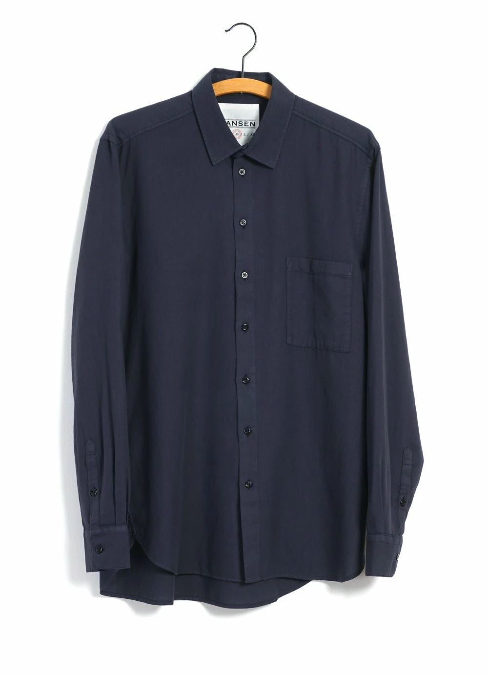 HENNING is the Hansen everyday shirt. We believe this fabric is addictive and the reason it is part of every collection. The design is straight-forward without any surprises. The fit is relaxed, and you can wear the shirt tucked or un-tucked. It is sewn with French seams all over and has natural Mother of Pearl buttons.