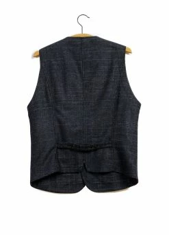 The yarn dyed Italian herringbone fabric has the classic look of tweed with melange blue and brown colours that give a lot of contrast. But, thanks to the blend of 52% Linen, 29% Wool and 19% Polyester, it’s lighter than you would expect.