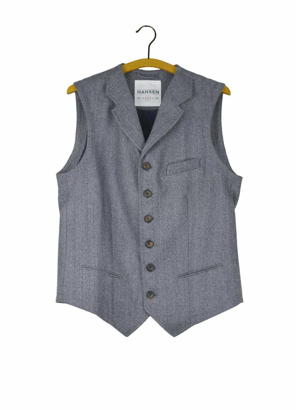 The 6-button William vest is a bit more dressed up than our other vests. Like the Anker sports jacket, it has a high-cut lapel and the double paspel pockets. William comes with an organic cotton lining.